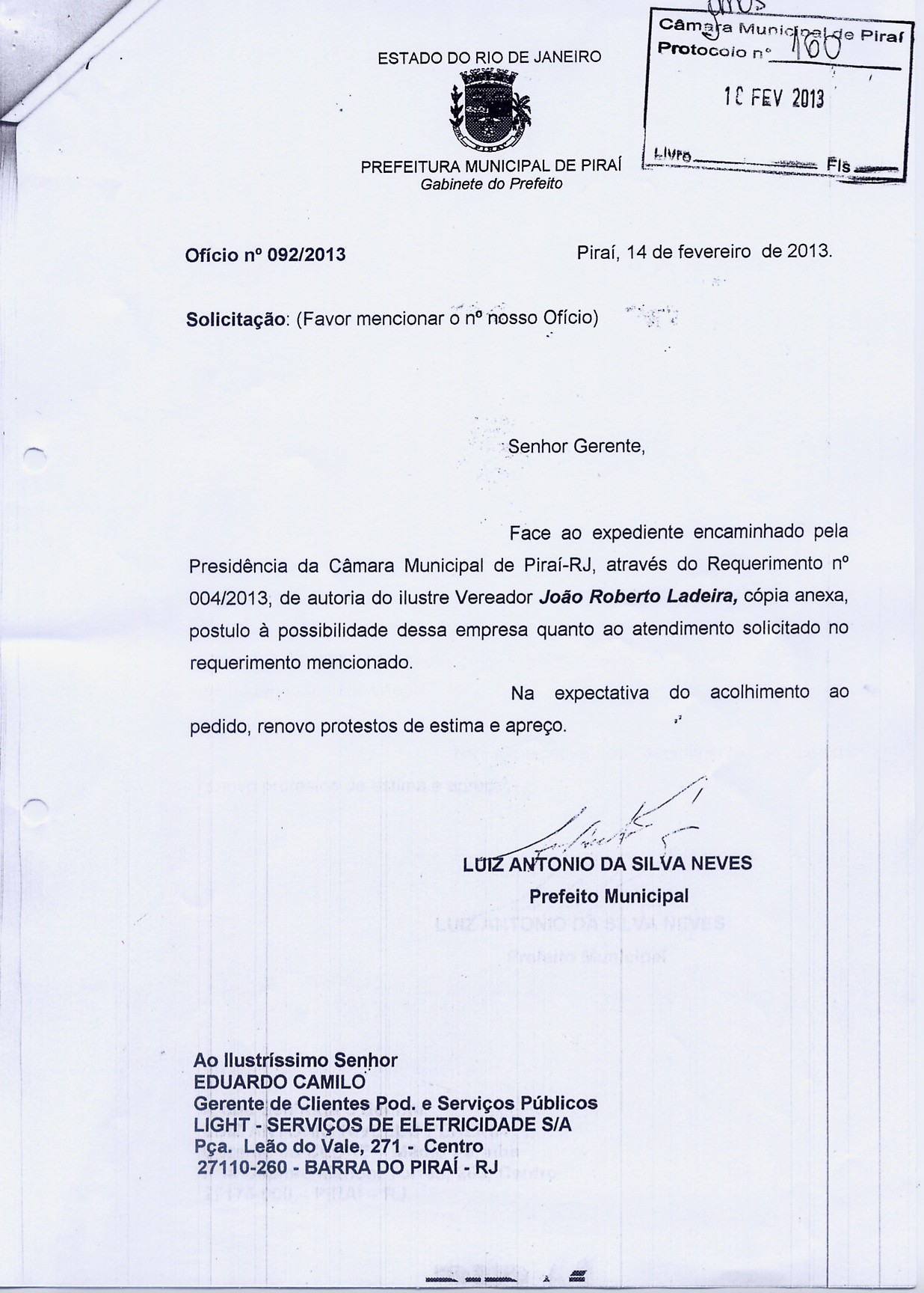 Ementa: RESPOSTA REFERENTE AO REQUERIMENTO Nº 19/2013