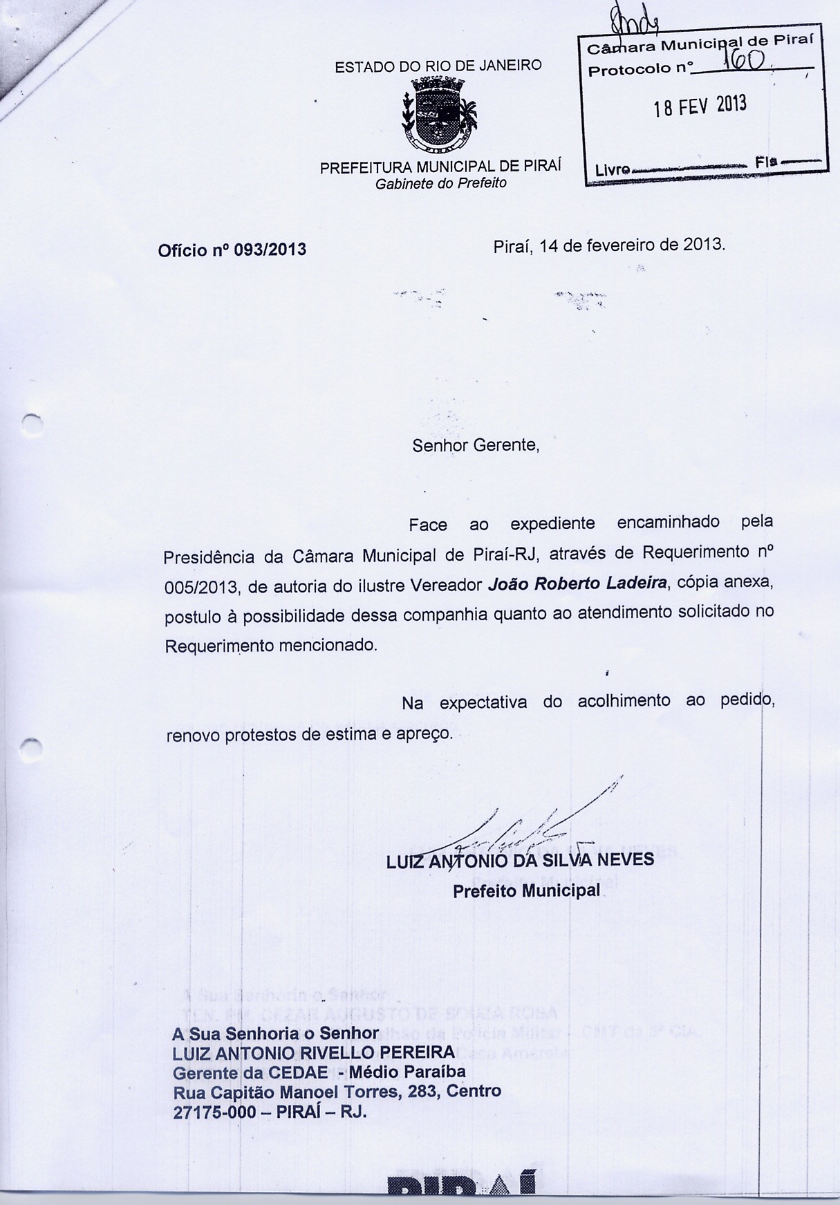 Ementa: RESPOSTA AO REQUERIMENTO Nº05/2013